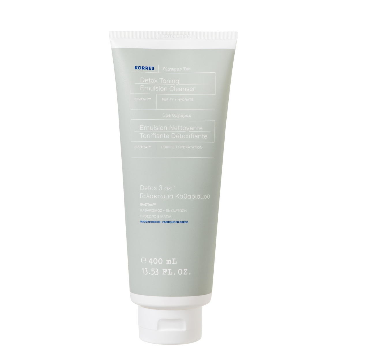 Γαλάκτωμα καθαρισμού προσώπου της Korres, κατάλληλο για όλους τους τύπους επιδερμίδας. Με ήπια ενυδατική σύνθεση που δεν αφήνει κατάλοιπα, εφαρμόζεται με δίσκο βαμβακιού και έπειτα μπορεί να απομακρυνθεί χωρίς τη χρήση νερού. Καθαρίζει τη σκόνη και τους ρύπους από την επιδερμίδα, ρυθμίζοντας τη λιπαρότητα και ενισχύοντας την ενυδάτωσή της, κάνοντάς την πιο λαμπερή. Κατάλληλο για όλες τις ηλικίες.